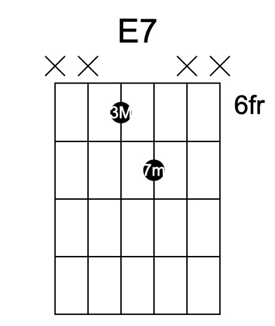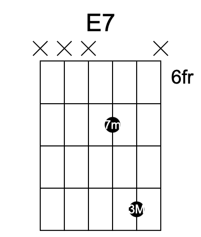 Per esempio, un accordo di settima dominante (un must nel funk) può essere ridotto solo alle note essenziali, come la terza e la settima. Invece di suonare un grande E7 (Mi7), potresti suonare solo un bicordo che comprenda il Re (settima minore) e il Sol# (terza maggiore).