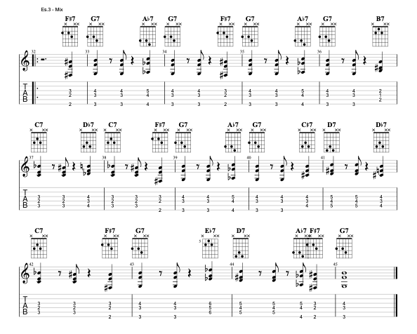 È molto importante procedere gradualmente, senza fretta e senza trascurare alcun dettaglio. Lavorate sul suono, utilizzate tutti gli accordi che conoscete (forme del CAGED, voicing) ed esercitatevi in tutte le tonalità esplorando diverse ritmiche e stili di accompagnamento (shuffle, straight, etc.) con dedizione e creatività. Ben presto vi renderete conto di quanto la vostra libertà sullo strumento sarà migliorata!