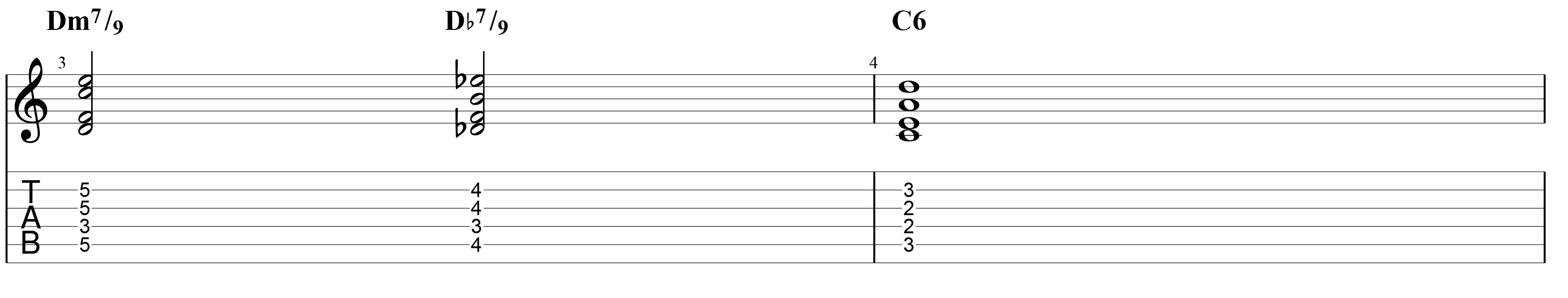 In un articolo precedente vi avevo spiegato la sostituzione di tritono, ricordate? Quindi possiamo modificare il V grado della cadenza perfetta introducendo il suo tritono: Dm7 Db7 Cmaj7.